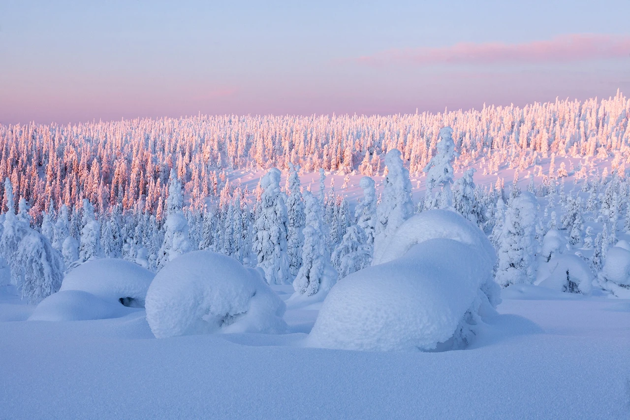 Oma täpse liikumise otsustame jooksvalt kohapeal vastavalt ilmaoludele, kuid oleme varunud aega nii Riisitunturi kui Salla rahvusparkide küngaste ja lumekoormat kandvate tykky-puude kui ka Oulanka rahvuspargi talviste jõemaastike jaoks. Imetleme Kiutaköngäs'e ja Jyrävä koskesid, vallutame Valtavaara ja Konttaise tipud ning naudime sealt avanevaid vaateid. Sallaski võtame suuna ülespoole- Iso Pyhätunturi laele.